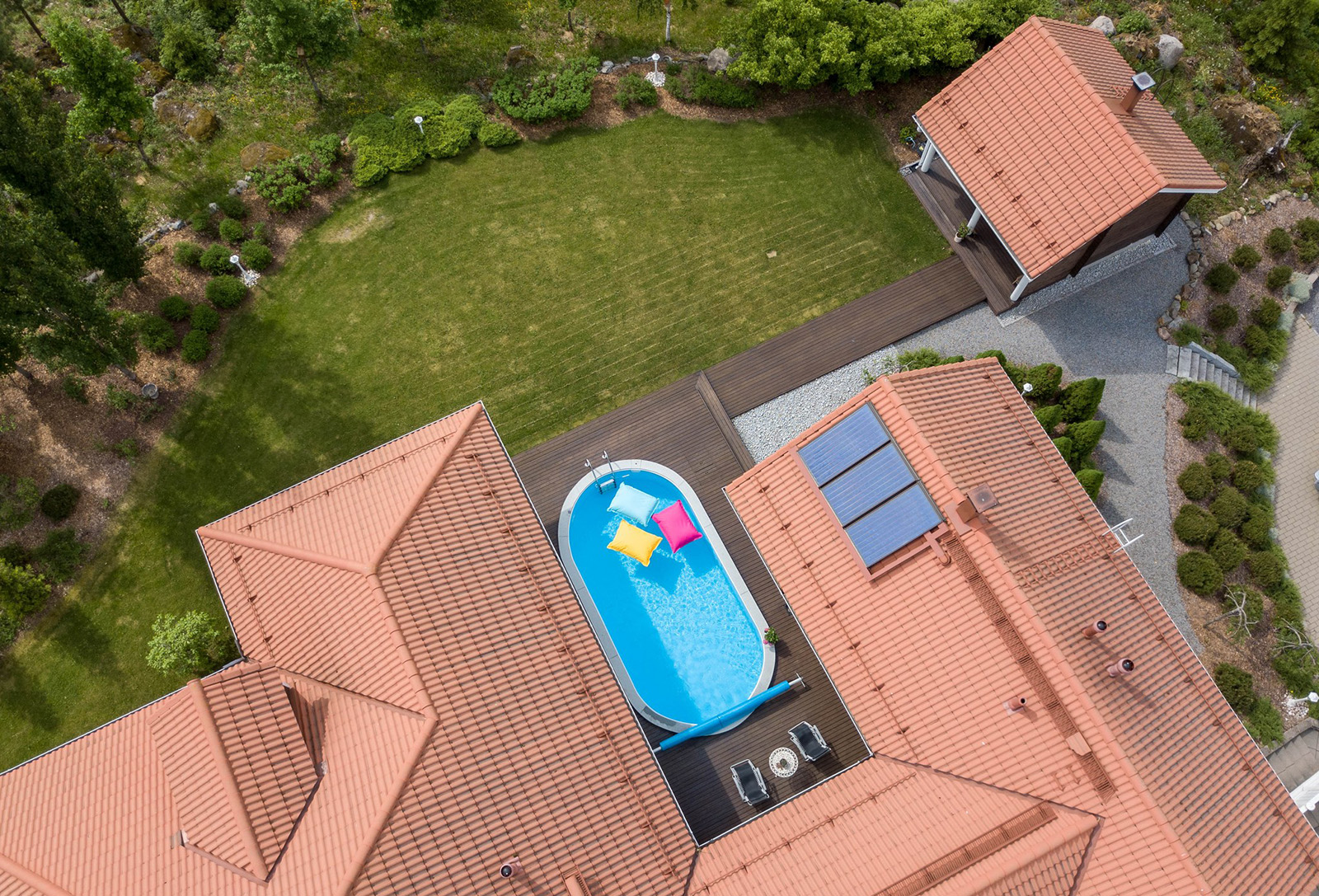 Omakotitalo sijaitsee Marttilanharjun päällä, ja siinä on suojaisa takapiha, uima-allas sekä hirsisauna ja suuri terassi. Mukavuutta tuovat lisäksi lämmin autotalli ja varasto, jonka katolla 15 aurinkopaneelia. Tontin pinta-ala 2252 m².